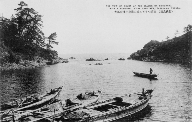 ★若狭・高浜・景趣つきざる城山海岸、小浦の風光(昭和5年頃) 軍・司令部の閲覧済の印字、海岸線のチェックは厳しかったようです。 〜絵葉書でタイムスリップ〜