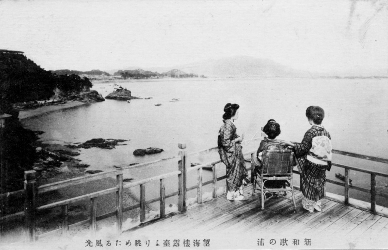★新和歌の浦・望海楼露室より眺めたる風光・・・どんな話をしてるんでしょうね。(年代不明) 〜絵葉書でタイムスリップ〜