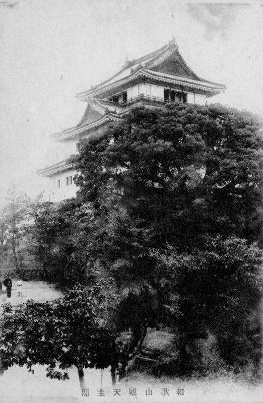 ★和歌山・和歌山城天守閣(年代不明) このお城は昭和10年に天守閣が国宝に指定され、シンボルとして愛郷心を育んで いましたが、昭和20年7月9日の戦災によりその雄姿を一夜にして焼失しています。 その後、多くの熱意と浄材により昭和33年10月1日に天守閣が再建されました。 この映像は焼失前の在りし日の和歌山城天守閣としてご覧下さい。 〜絵葉書でタイムスリップ〜