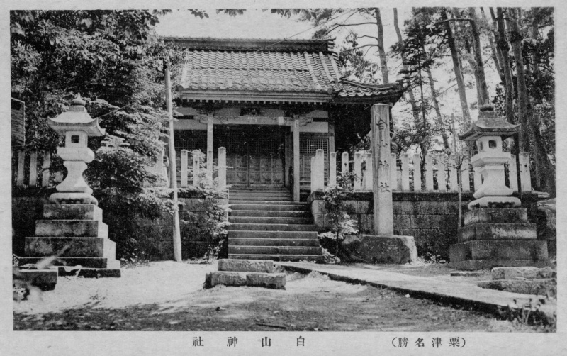 ★加賀の霊泉・粟津の勝景・(粟津名勝)・白山神社・・・(年代不明) 粟津温泉の裏景にある岳山、辺りにあります。 〜絵葉書でタイムスリップ〜