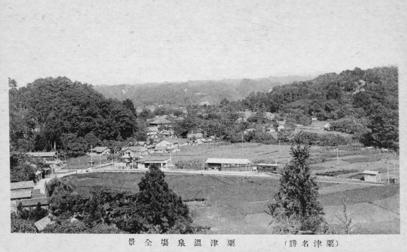 ★加賀の霊泉・粟津の勝景・(粟津名勝)・粟津温泉場全景・・・(年代不明) 粟津温泉の裏景にある岳山、養老山からの眺めでしょうか。 〜絵葉書でタイムスリップ〜