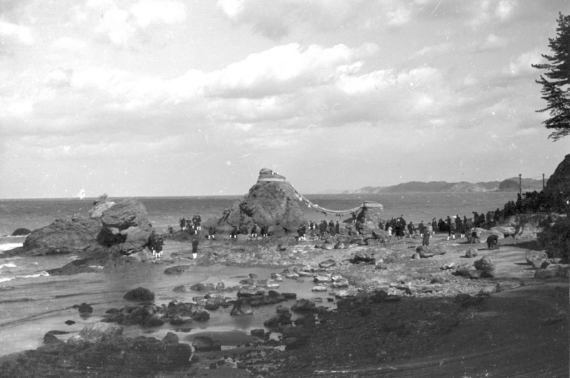 ★伊勢・夫婦岩・修学旅行の生徒さん達でしょうか・・。(昭和初期頃)