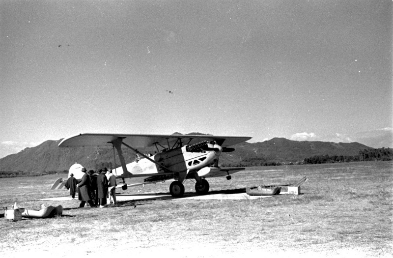 ★場所は不明です。気持ちのいい場所に飛行機・・・。整備中ですか?(昭和初期頃)