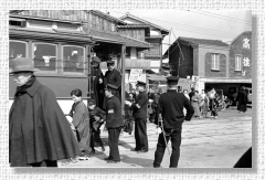 | 18.千本今出川南側から北西を望む(昭和初期頃) | 19.北野天満宮南側・チンチン電車(昭和初期頃) |
